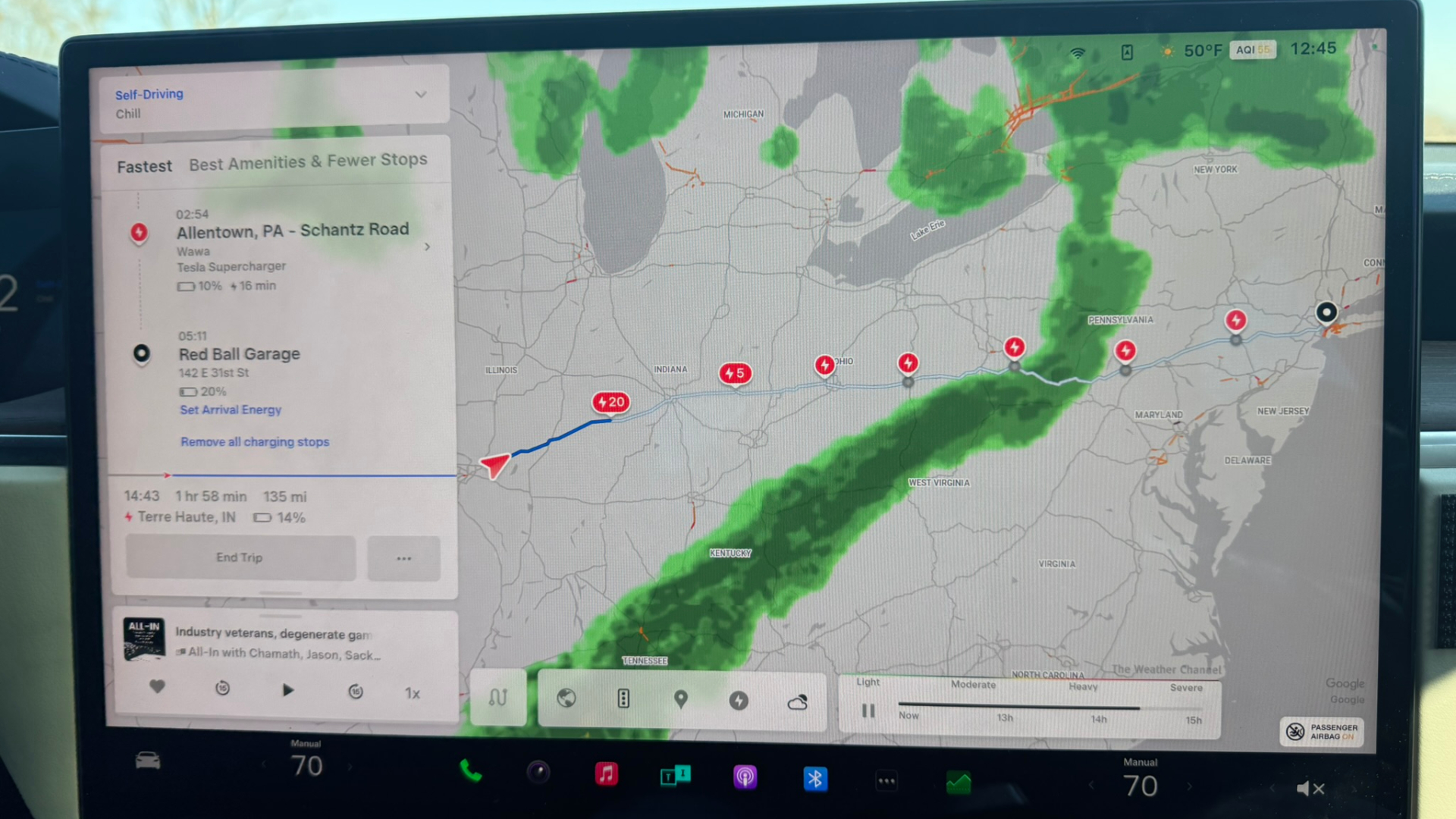 Like Moss, Roy and his team were hands-off for the entirety of the trip, including charging stops. Every inch of driving was handled entirely by the car. The team was so committed to this, in fact, that one member was stranded at a western Pennsylvania rest stop while the others completed a 90-minute detour just to circle back around and pick him up without disengaging FSD. That’s dedication.